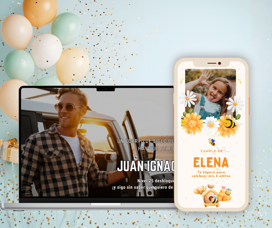 Da igual si cumples 8, 40 u 80, en Olé tenemos la invitación digital perfecta para montar el fiestón del año. Diseños modernos para avisar a todos de que el modo «ON» de la fiesta ya está activado.