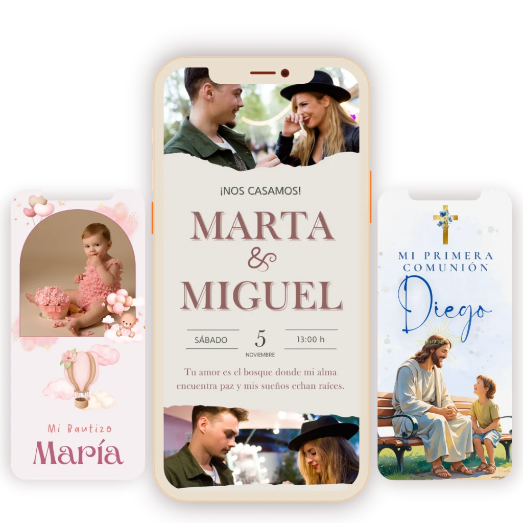 Invitaciones digitales modernas y únicas que hacen sentir la emoción desde el primer clic.